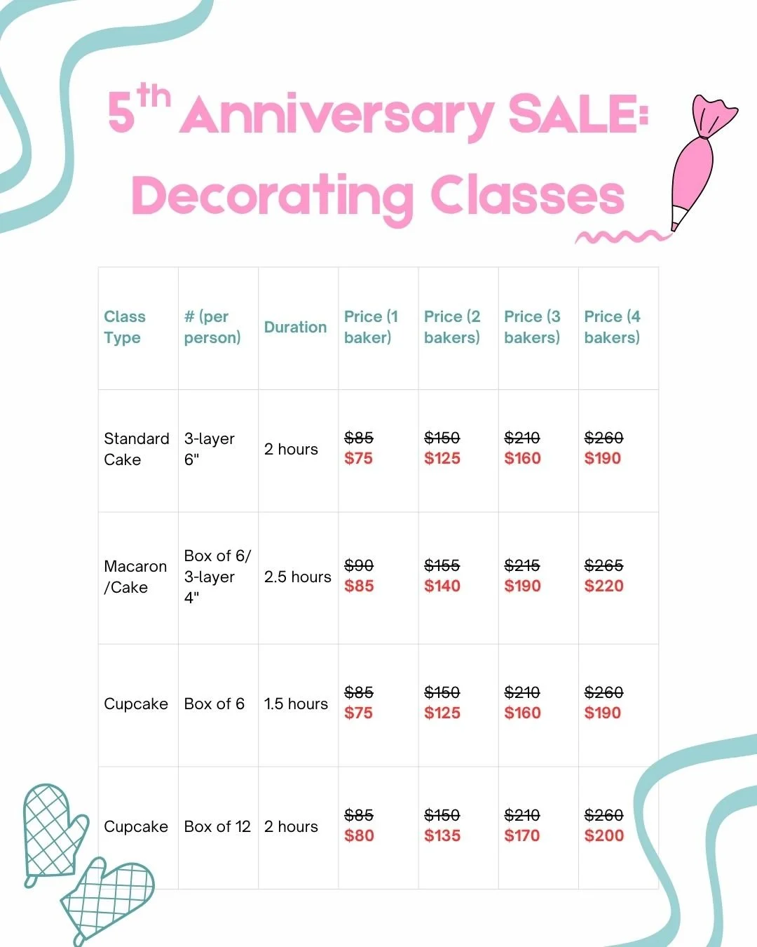 Please fill out this form to schedule a cake/cupcake/macaron decorating class with Patteson and Alice!